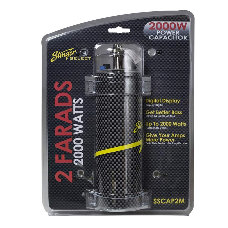 Power up your car audio system with the Stinger SSCAP2M Carbon Fibre 2 Farad Digital Power Capacitor. Designed for high-performance setups up to 2000W, this capacitor delivers the instant power your amplifier needs, ensuring consistent voltage, improved bass response, and reduced dimming of your vehicle’s lights.