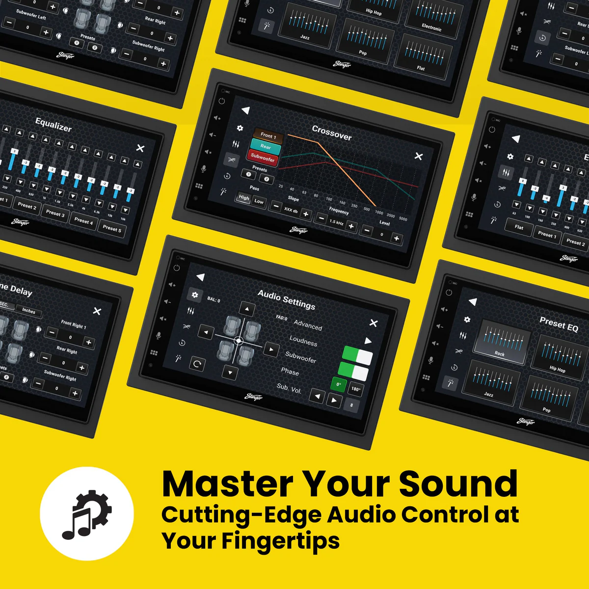 Powered by a 4 x 26W RMS amplifier (45W max per channel) and advanced 24-bit DSP. Fine-tune your sound with a 13-band EQ, time alignment, independent subwoofer control, and adjustable crossovers. -
